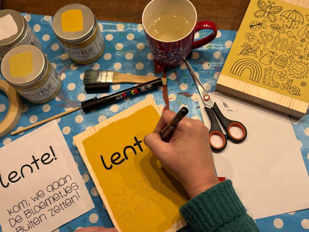 Na de uitleg ga je aan de slag met je eigen plankje. Je kiest je basiskleur(en) en welke spreuk/tekst je op het plankje gaat maken en gaat vervolgens hiermee aan de slag.