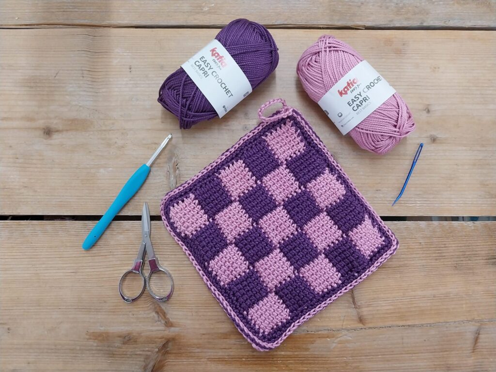Bij de workshop zijn 2 bollen Easy Crochet Capri inbegrepen. Dit is voldoende voor 1 pannenlap. Wil je een 2e pannenlap erbij maken, dan is het mogelijk de avond zelf nog 2 extra bollen te kopen.